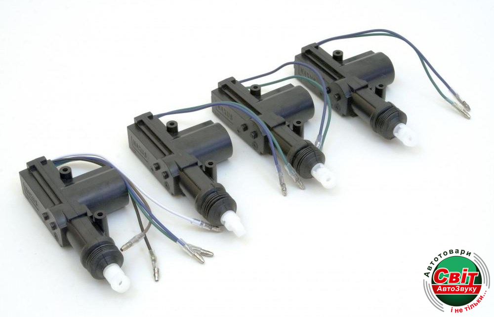 Центральний замок MaXuS YR-308-4D з дистанційним керуваннямКомплект центрального замка на четыре двери (один 5-ти и три 2-х проводных привода), полная комплектация для установки + два брелка с выкидным ключём