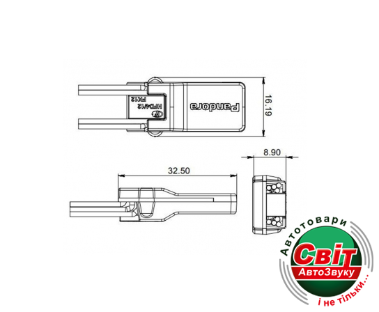 Pandora BT-01 имеет просто миниатюрный габарит (32х16х9 мм), который позволяет его легко прятать, вплетать в штатные жгуты проводки, а тот факт, что к базовому блоку не идут провода, делает это устройство максимально скрытным.