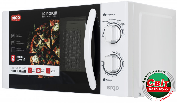 Мікрохвильова піч ERGO EM- 2065Стильная и удобная микроволновая печь ERGO EM-2065 мощностью 700 Вт предназначена для разогрева и размораживания пищевых продуктов.