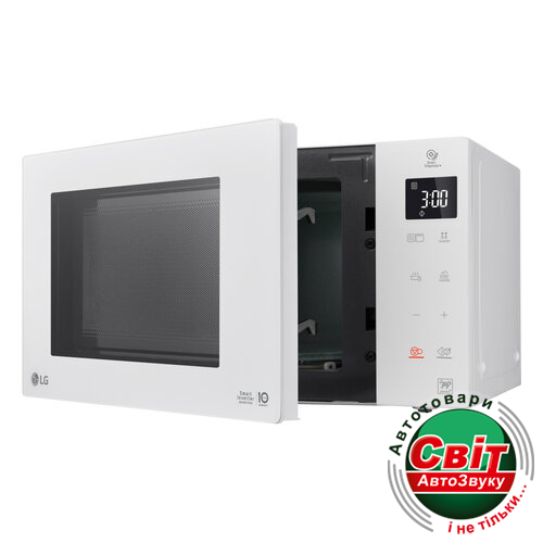 LG MH6595GIH получила прочный корпус белого цвета. В дизайне преобладает лаконичность и простота. Панель управления представлена сенсорными кнопками, с помощью которых пользователь может установить оптимальный температурный режим и таймер приготовления блюда. Яркая LED-подсветка позволяет контролировать весь кулинарный процесс, не открывая дверцу.