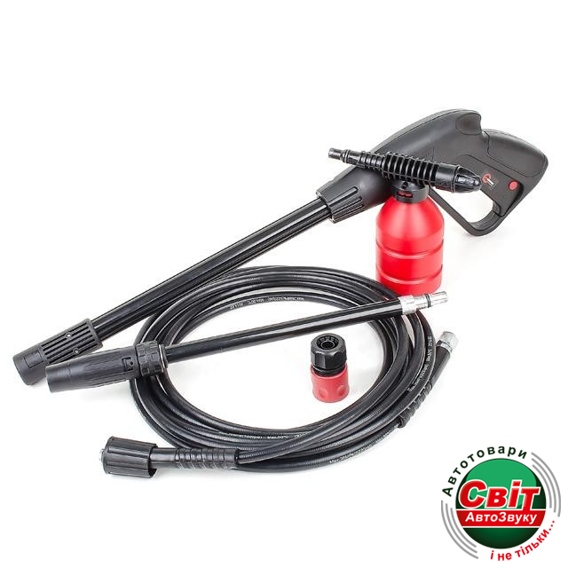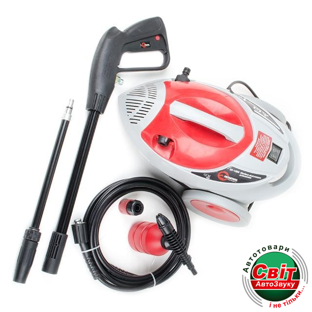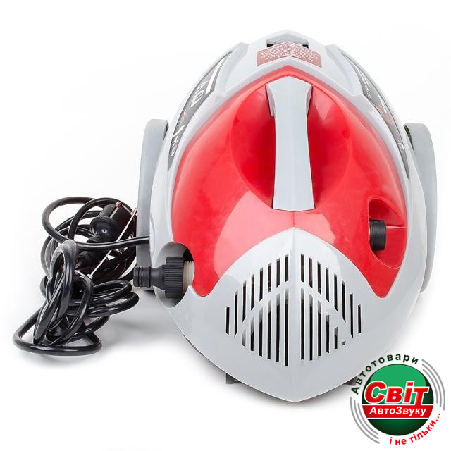 Мінімийка INTERTOOL DT-1504Мойка DT-1504 – это мощный водяной очиститель высокого давления, который поможет вам помыть машину, лодку, мотоцикл, тротуар, стены дома и т.д. Отличительной особенностью этой мойки является то, что она может производить забор воды из резервуаров и не требует обязательного подключения к водопроводу. Несмотря на небольшой размер, насос очистителя создает внушительное давление с регулировкой от 75 до 135 бар, подает воду со скоростью 384 литра в час, причем воду можно использовать с температурой до 50°C. Мощность электродвигателя, приводящего в действие трехплунжерный насос мойки – 1500 Вт. Помпа инструмента – металлическая. При использовании очистителя, особенно при заборе воды из резервуара, рекомендуется применять водяной фильтр грубой очистки.