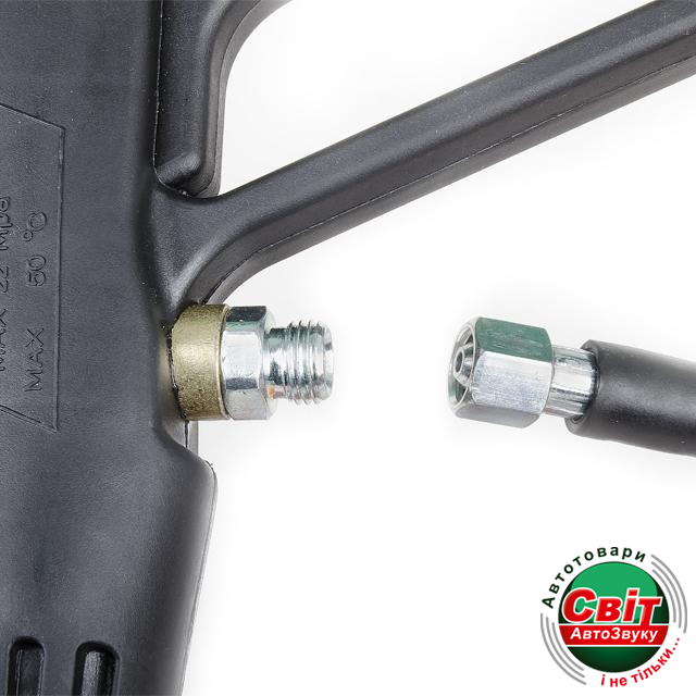 - Прикрутить часть быстросъемного соединителя к входному отверстию мойки.