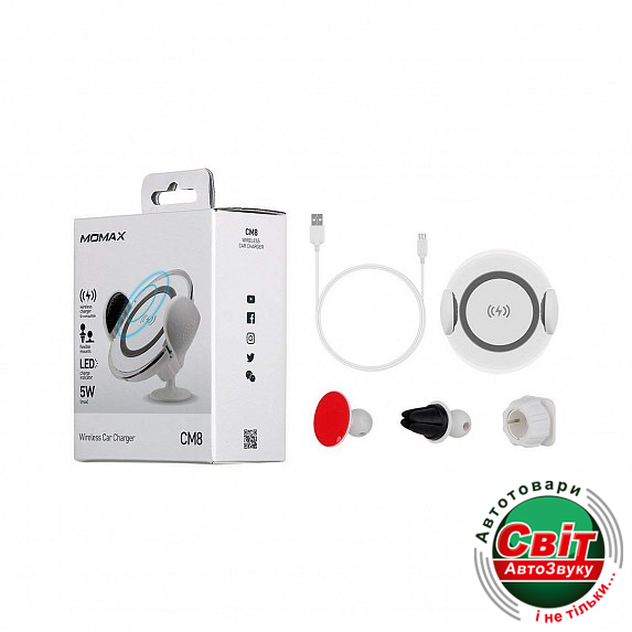 MOMAX Wireless Car Charger White (CM8W)Momax Wireless Car Charger – это практичное и компактное решение для автомобилистов, которые хотят с удобством пользоваться в пути своим смартфоном. Девайс выполняет роль держателя и одновременно заряжает гаджет без дополнительных проводов и кабелей. Это устройство также помогает повысить безопасность во время движения, поскольку с ним водителю не нужно убирать руку с рулевого колеса, чтобы держать мобильный телефон.