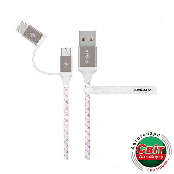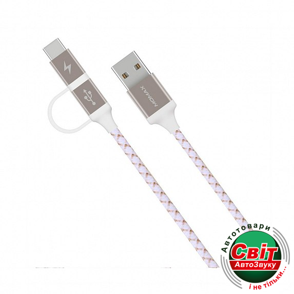 MOMAX Zero 2in1 Type-C and Micro USB Cable 1m Gold (DTC11L)Быстрая и безопасная зарядка