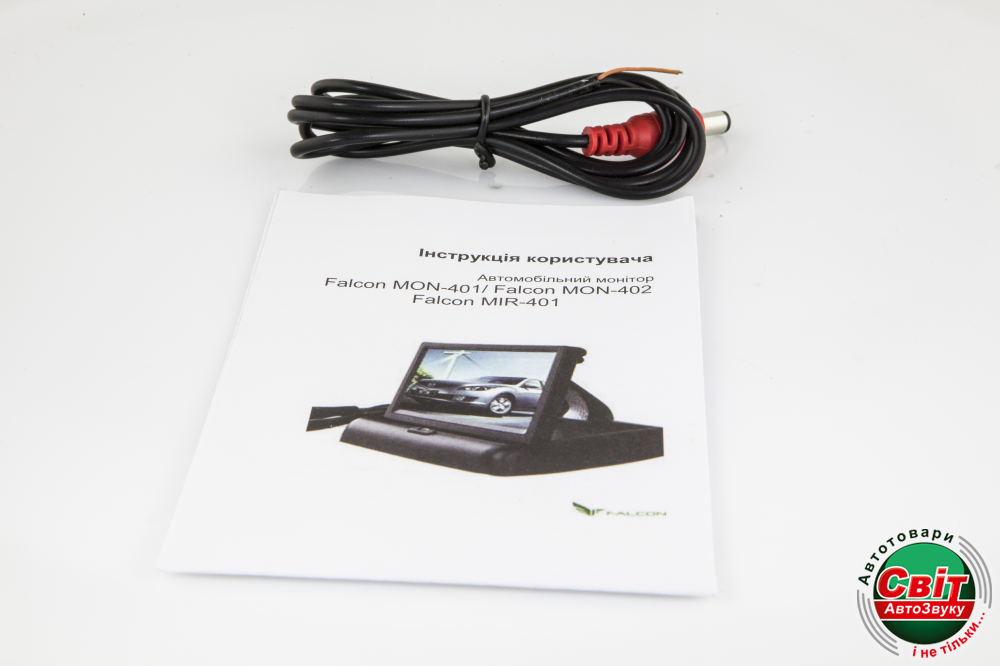 - Автомобільний монітор Falcon MON-401 з кольоровим екраном 4.3". Ця модель є універсальним автомобільним монітором. Falcon MON-401 має 2 відеовходи з пріоритетом входу під камеру.