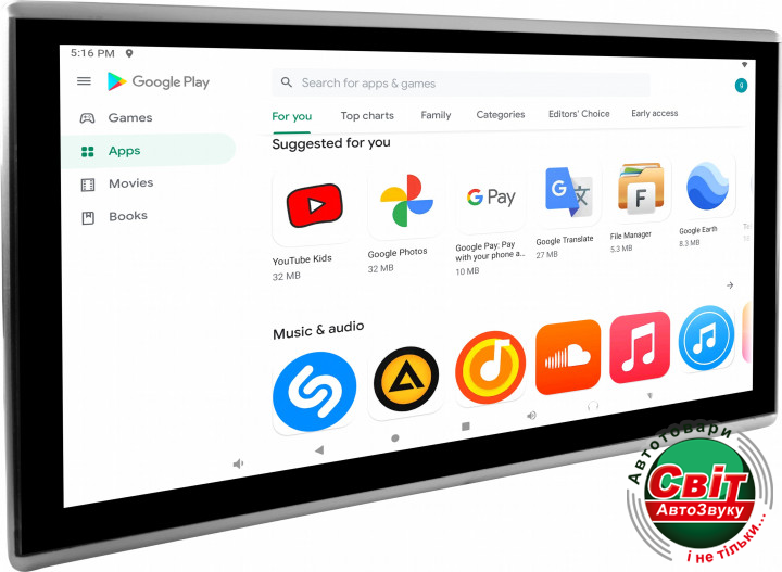 У представленому магазині додатків Google Play знаходяться тисячі популярних ігор, розвиваючих програм та корисних додатків. Тут ви знайдете відповіді на такі питання: Чим зайняти малюка в машині? Як розвинути дитини в ігровій формі? Чим зайняти попутників під час довгої подорожі?