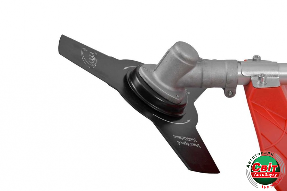 - У базову комплектацію входить тризубий ніж, який полегшить косіння високої та деревної трави, чагарників і бур'янів;