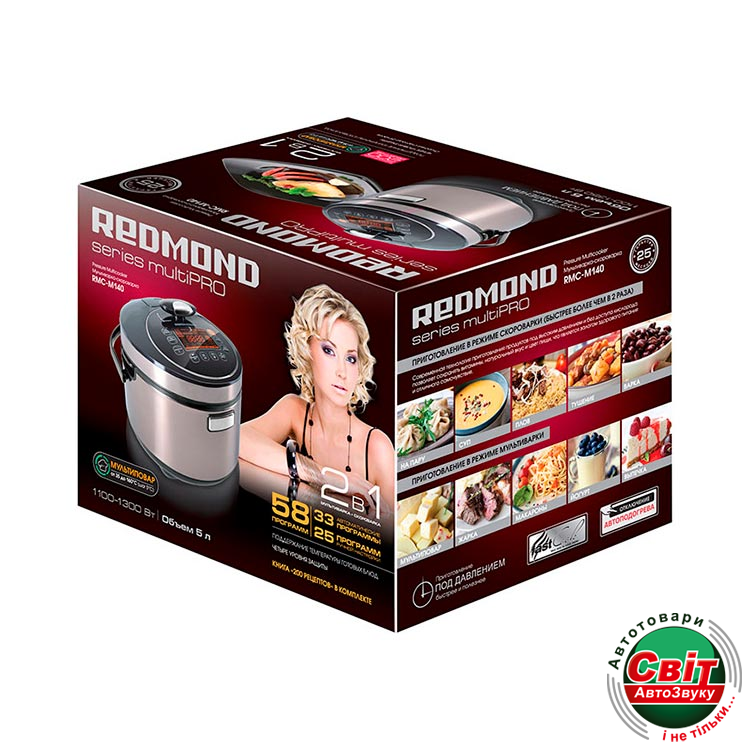 Мультиварка REDMOND RMC-M140Мультиварка-скороварка REDMOND RMC-M140 – топовая модель, включающая в себя функциональность высокотехнологичной мультиварки и сверхбыстрой скороварки, это уникальный синтез «2 в 1», разработанный специально для исключительного удовлетворения кулинарных потребностей взыскательных персон.