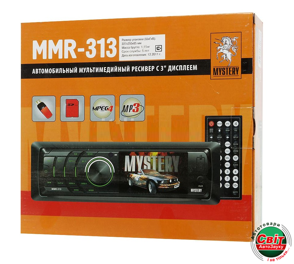 Mystery MMR-313 - DVD автомагнитола без CDпривода , но с USB и SD разъемами, которая воспроизводит видео и имеет экран размером 3 дюйма. Съемная лицевая панель, дистанционный пульт управления, чтение тегов (названий песен) на русском языке. Одно из преимуществ автомагнитолы Mystery MMR-313 - это 4-х канальный линейный выход, что позволяет построить даже аудиосистему на этой магнитоле (отдельный выход на фронт и саб/тыл).Такие автомагнитолы как Mystery MMR-313 новая тенденция в развитии автомобильной акустики. Все большее количество пользователей отказываются от CDдисков и предпочитают такие носители информации как USB Flash накопители (Флешки) которые более удобны.