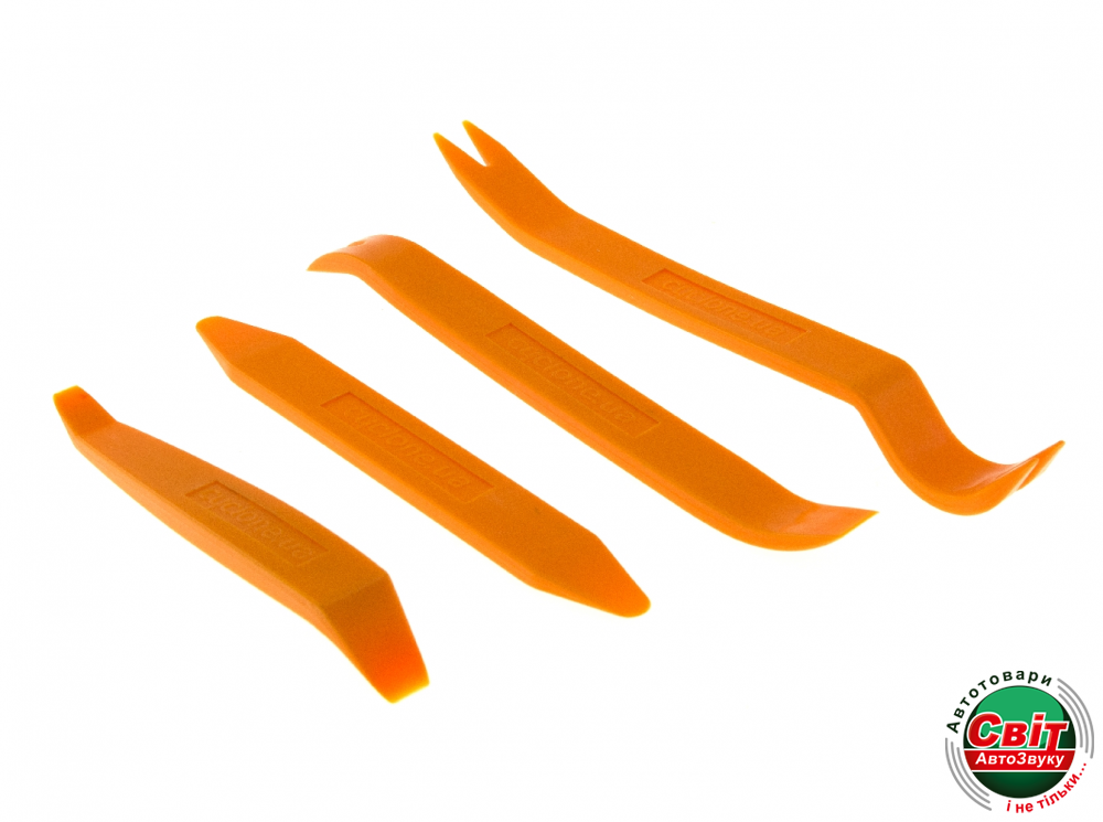 В наборе 4 лопатки различной конструкции, что позволяет снять любую деталь автомобиля без особых усилий.