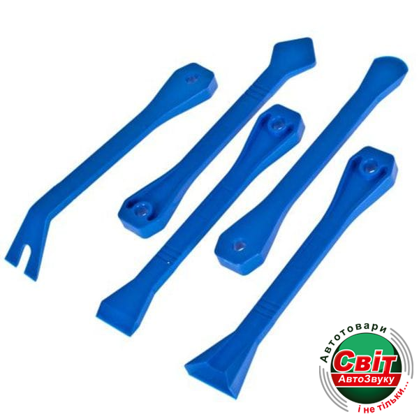Якщо ви коли-небудь знімали обшивку, облицювальні панелі в салоні автомобіля, ви напевно стикалися з тим що, якщо працювати не спеціалізованим інструментом, практично зі стовідсотковою ймовірністю м'яким елементам будуть нанесені зазубрені, сколи, подряпини і т. п. Даний набір зроблений з м'якого полімерного матеріалу, вплив якого не завдає шкоди елементів облицювання і кріплень. З допомогою знімачів можна проводити поддевание, з'їм, монтування різних деталей. Активно використовуються на станціях технічного обслуговування автомобілів, в автосервісах і автомайстерень.