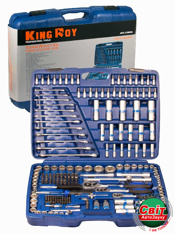 Набір інструментів King Roy 215-MDA (215 предметів)Обладает оптимальным сочетанием цена-качество. Все насадки изготовлены из высококачественной хром-ванадиевой стали. Поставляется набор в пластиковом кейсе с защелками. Все инструменты компактно размещены и надежно зафиксированы.