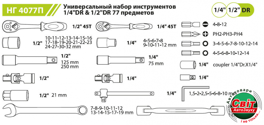 Набір інструментів Alloid НГ-4077П (77 предметів)Особенности: