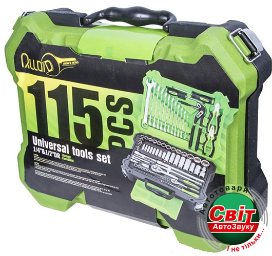 Набір інструментів Alloid НГ-4115П (115 предметів)Набор инструмента Alloid НГ-4115П на 115 предметов -относится к новой серии наборов от производителя Alloid . Отличается усовершенствованным пластиковым кейсом с прочной и стойкой основой, надежными и долговечными металлическими зажимамы. Отдельное внимание стоит обратить на выдвижной отсек для мелких деталей (бит, насадок и др). Усовершенствованный кейс более удобный в использовании, его высоко оценят как профессионалы, так и автолюбители.