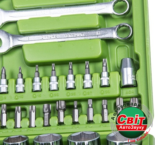Головки снабжены компенсатором напряжения. Зеркальное отполированное покрытие рабочей части головок способствует быстрому и легкому удалению грязи. Трещотки. Бензомаслостойкие и стойкие к истиранию двухкомпонентные рукоятки обеспечивают надежный захват инструмента при работе.