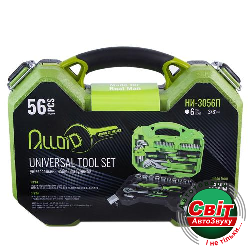 Набір інструментів Alloid НИ-3056П (56 предметів)Універсальний набір інструменту 3/8" - висока якість матеріалів, ергономічний, яскравий дизайн інструментів і упаковки. Інструмент Alloid виконаний з дотриманням найвищих стандартів, що гарантує високу надійність. Відмінний варіант у співвідношенні ціна - якість. Alloid - якісний інструмент у середній ціновій політиці. Якісний, продуманий, зручний в роботі універсальний набір інструменту Alloid 3/8" 56 предметів (НІ-3056П) розроблений для ентузіастів, які віддають перевагу ремонту самостійно, а також любителів, які час від часу, за необхідності, використовують компоненти набору інструментів при виконанні побутових нескладних робіт.