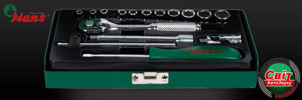 Набір інструментів Hans 2616M (16 предметів)Набір інструментів HANS 2616M изготавливается под жёстким контролем качества на каждом этапе производства ― от выбора материала до получения готового изделия. Это высококачественный инструмент для профессиональных работ.