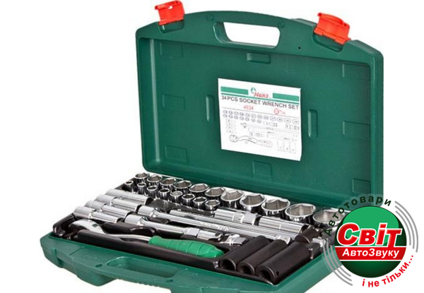Набір інструментів Hans 4634 (34 предмета)Hans 4634 - це набір автоінструментів, які виконані з високоміцного сплаву. Даний матеріал здатний витримувати високі навантаження, що значно розширює сферу застосування даного комплекту. Набір Hans 4634 стане незамінним помічником як аматора, так і професіонала.