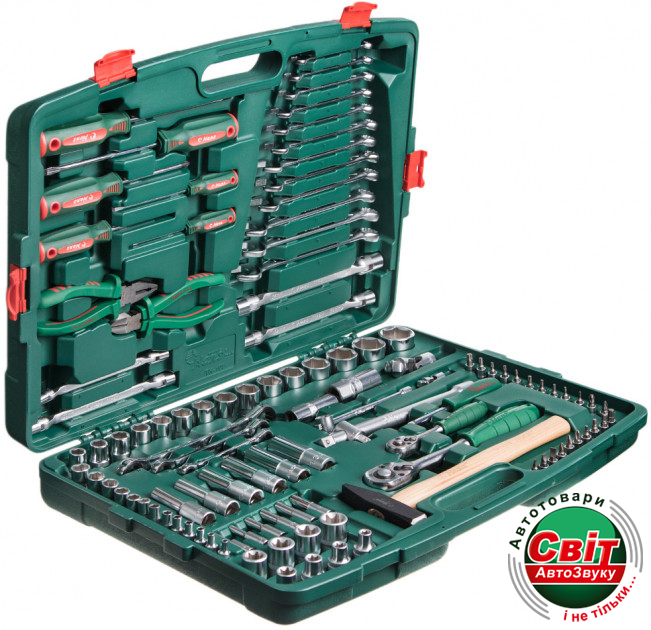 В комплекте большое количество инструментов, рабочие части которых изготовлены из прочной и долговечной хром ванадиевой стали с защитным покрытием.