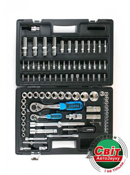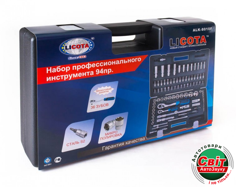 Набір інструментів Licota ALK-8010FБольшой ассортимент торцевых головок гарантирует своевременное решение любого автомобильного вопроса. В набор инструмента включено 18 шестигранных торцевых головок на 1/2” (10-32 мм) и 13 головок на 1/4” (4-14 мм), а также широкий спектр аксессуаров к ним: прочные трещотки с масло- и бензостойкой рукоятью на 36 зубов, два удлинителя под оба квадрата (можно использовать как вороток с помощью подвижного бегунка), гибкий удлинитель, карданы и адаптеры под биты и комплект из трех шестигранных ключей (1.5, 2 и 2,5 мм). Набор ALK-8010 - это отличное подспорье для создания собственного, уникального инструментария любого профиля. В ваших силах доукомплектовать этот набор различными инструментами: например, головки с Е-профилем (Torx) расширят возможности ремонта автомобилей иностранных производителей, набор бит разного профиля упростит работу с любым крепежом.