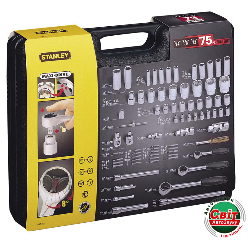 Набір інструментів STANLEY 1-87-193 (75 предметів)Набор торцевых головок 1/4", 3/8" и 1/2" (75 предметів).
