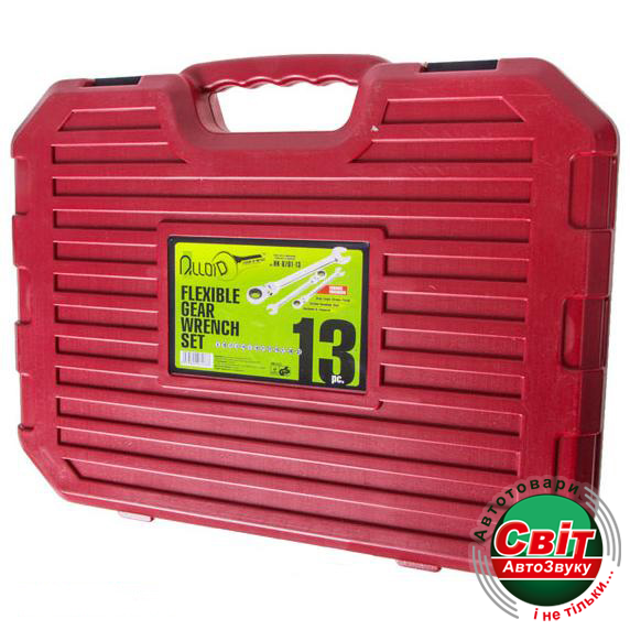 Набір ключів ріжково-накидних трещоточных с карданом Alloid НК-8701-13 (13 предметів)Набор Alloid НК-8701-13 состоит из 13-ти комбинированных ключей с трещотками и шарнирами для завинчивания/отвинчивания резьбовых соединений, имеющих внешний профиль.