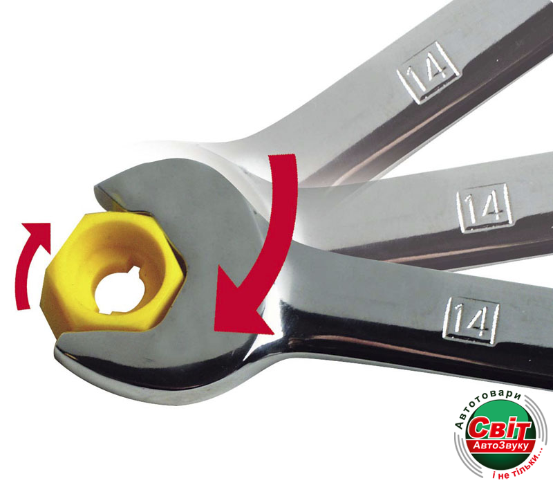 - Головка накидного ключа с храповым механизмом устраняет необходимость каждый раз устанавливать ключ на крепежный элемент, обеспечивая его чрезвычайно быстрое затягивание или ослабление