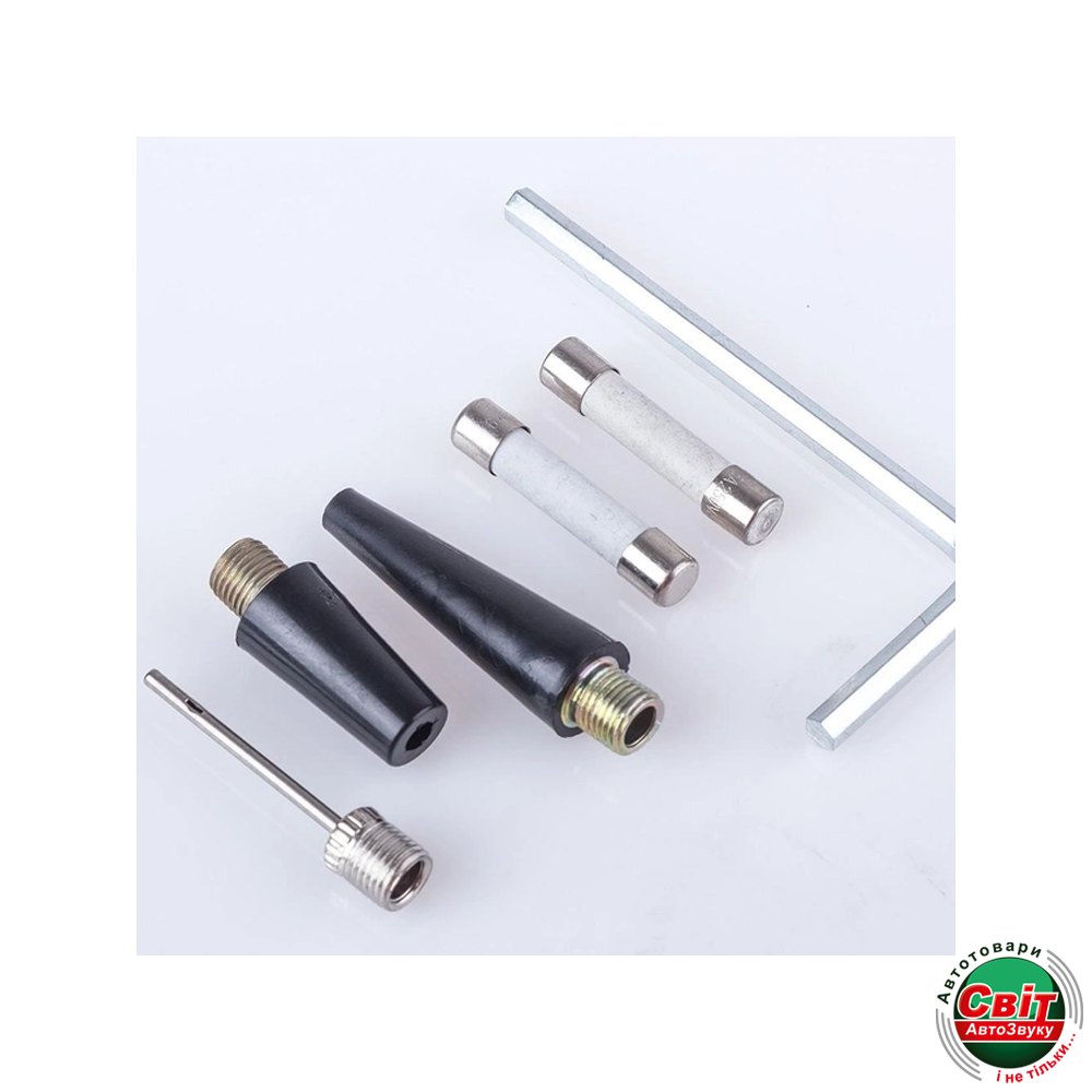 Вбудований електричний компресор набору 3 в 1 Vitol HF045 дає змогу без зусиль накачати шини автомобіля.