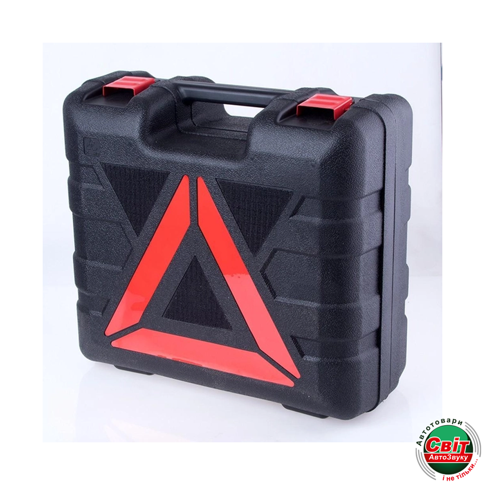 Набір перехідників для компресора і робочі рукавички в комплекті також роблять цей набір універсальним і зручним у використанні. Всі інструменти упаковані в зручний і міцний кейс, зі знаком аварійної зупинки, який легко поміщається в багажнику автомобіля.