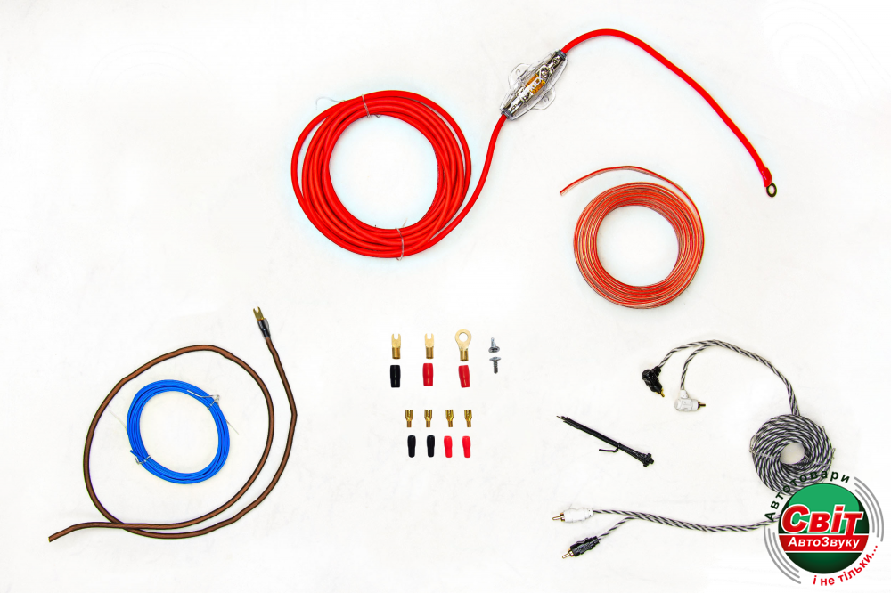 Набір для підключення підсилювача Kicx PKM-208Комплект для підключення 2-х канального підсилювача, силовий мідно-алюмінієвий кабель 8GA, запобіжник типу MiniANL.