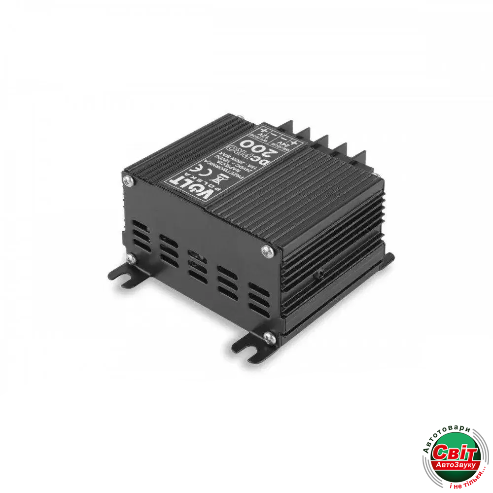 Інвертор VOLT Polska DC-PRO 200 24/12V 15АЕлектронний перетворювач DC-PRO 200 24/12V - це сучасний і завадостійкий пристрій, призначений для зниження напруги автомобільних установок з 24 до 12В. Даний перетворювач часто використовують власники вантажних автомобілів і автобусів з бортовою напругою 24В для підключення додаткового обладнання з живленням 12В.