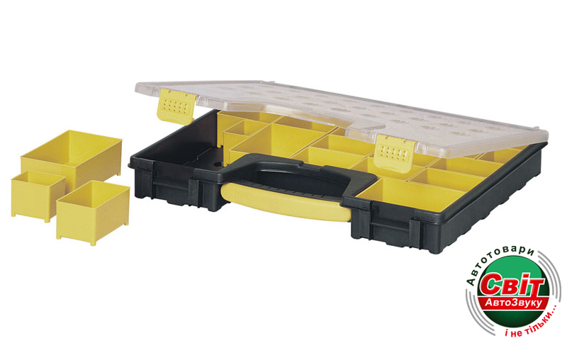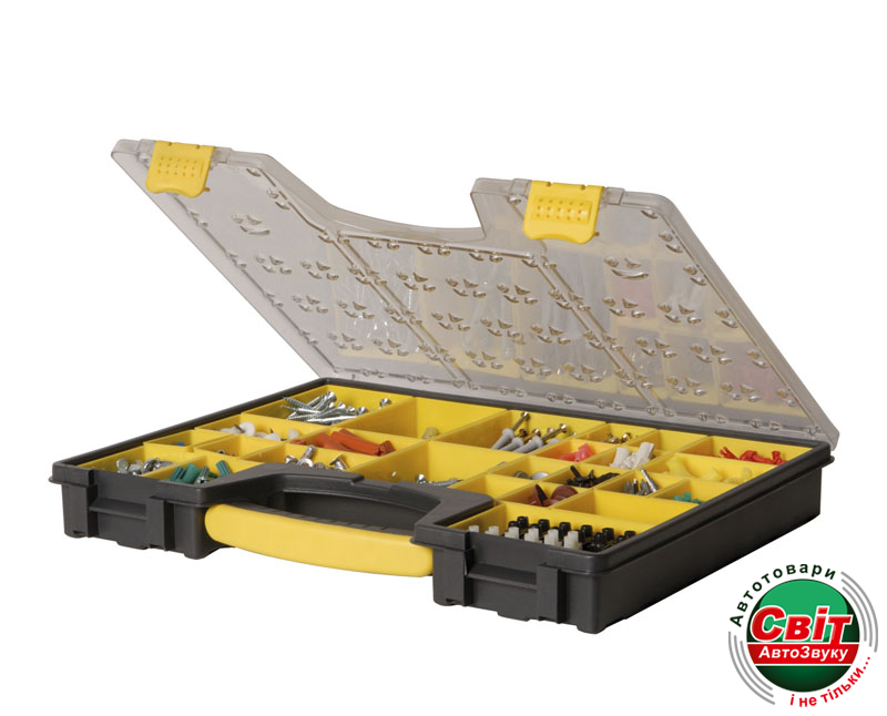 - Профессиональный органайзер с 25-тью съемными отделениями: ударопрочная прозрачная крышка из поликарбоната имеет специальную конструкцию, удерживающую отделения для хранения на месте
