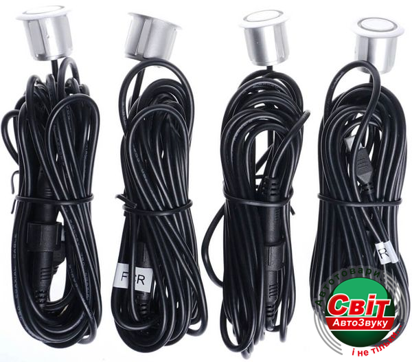 Комплектация данной модели включает в себя блок управления, четыре датчика 18.5 мм серебряного цвета, дисплей с LED шкалой, бипер для звуковых сигналов. Сенсоры наружного типа (выступающие, с фаской) устанавливаются в задний бампер транспортного средства.