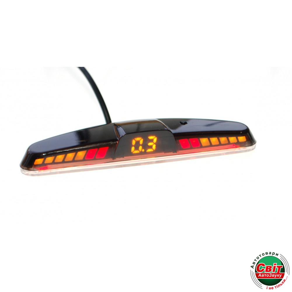 Парктронік Baxster PS-418-15 SilverПаркувальні радари Вaxster — це система ультразвукового спостереження, яка контролює зону позаду автомобіля під час руху заднім ходом і в разі визначення перешкоди попереджає про це водія за допомогою звукового сигналу й індикації на світлодіодному дисплеї.