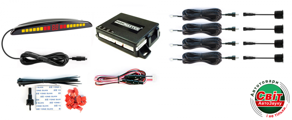 Парктронік ParkMaster 35F-4-A Black• система парковки для переднего бампера• LED-индикатор• графическая и цифровая индикация• звуковое и голосовое оповещение• функция переворота индикации• шаг измерения расстояния 0,1м• комплектуется 4 датчиками типа A