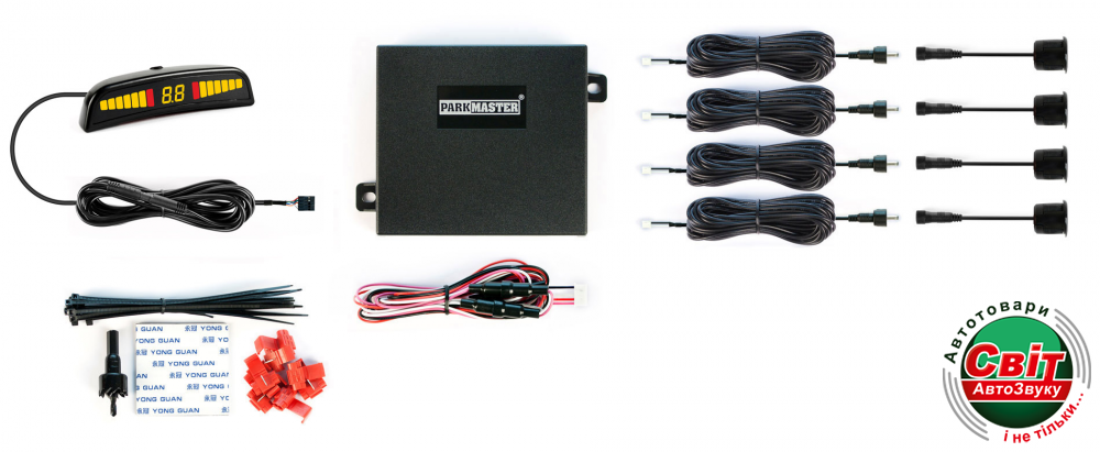 Парктронік ParkMaster 45-4-A Black• LED-индикатор с возможностью установки на неровные поверхности внутри автомобиля, например на рулевую колонку