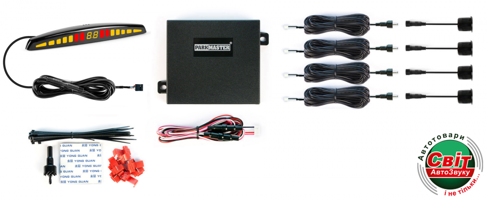 Парктронік ParkMaster 47-4-A Black• LED-индикатор• графическая и цифровая индикация• звуковое и голосовое оповещение• функция переворота индикации• шаг измерения расстояния 0,1м• комплектуется 4 датчиками типа A