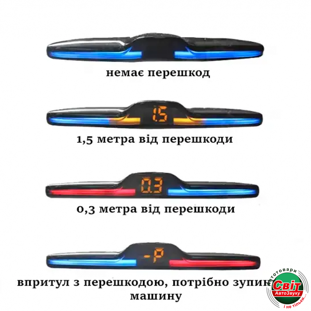 Коли відстань до перешкоди скорочується, попереджувальний сигнал збільшує частоту. Перші звуки він видає у разі наближення до перешкоди на 1-2 метри, а у разі небезпечного зближення з перешкодою (30-40 см, залежно від моделі) звуковий сигнал стає безперервним.