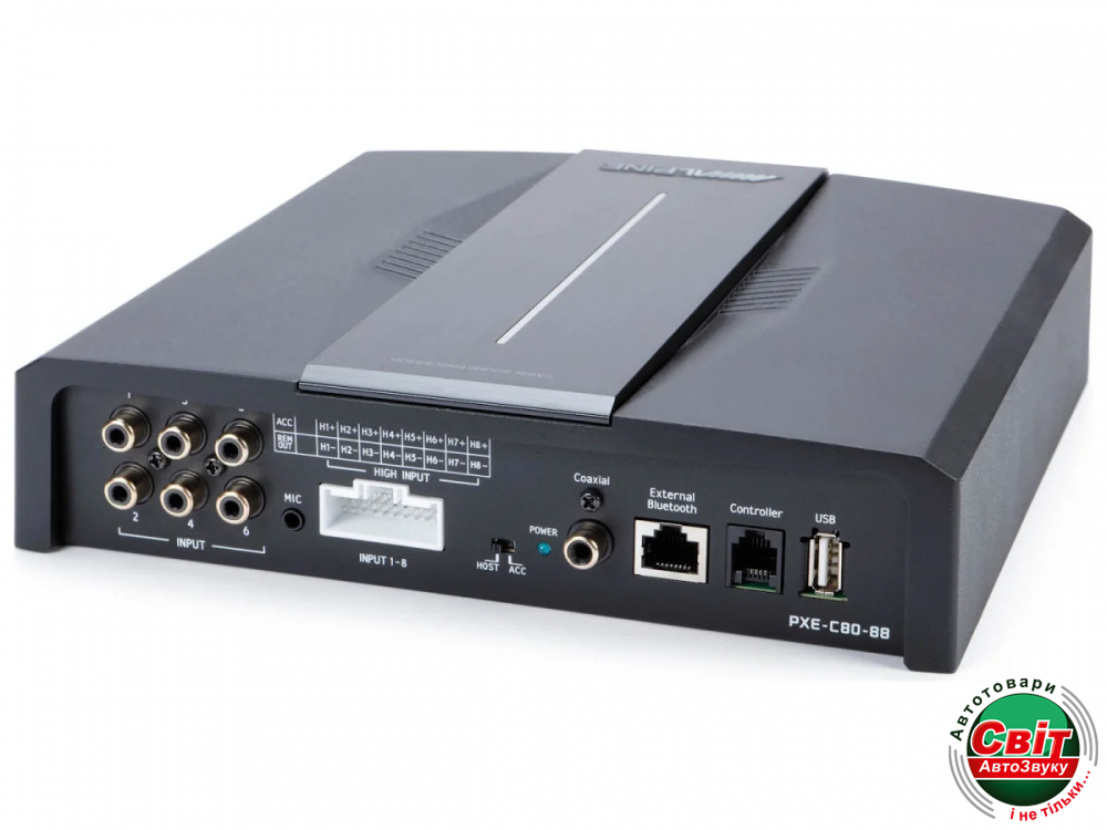 Alpine PXE-C80-8 – це 8-канальний DSP-підсилювач, призначений для відтворення звуку високої роздільної здатності. Він був розроблений для роботи зі всіма автомобільними магнітолами. Він видає 6x35 + 2x130 Вт RMS на 4 Ом та залишається стабільним на 2 Ом. З його появою Alpine усунула всі труднощі, що зазвичай супроводжують спроби налаштувати звучання автомобільної аудіосистеми. Використовуючи цифровий сигнальний процесор, цей 8-канальний підсилювач PXE-C80-88 OPTIM8 DSP забезпечує автоматичне налаштування звуку та високу роздільну здатність, щоб ви могли насолоджуватися найкращою якістю звучання. Щоб ви могли насолоджуватися винятковою точністю, чистотою, балансом та впливом музики. Після початкового налаштування за допомогою комп'ютера всі параметри можуть бути виконані автоматично за допомогою програми керування PXE-C80-88 OPTIM8 на вашому iPhone.