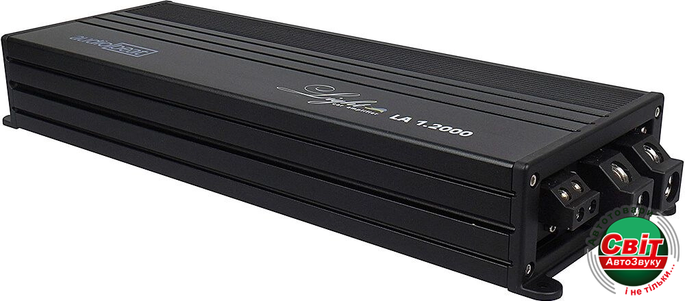 Підсилювач AudioBeat LA 1.2000Автомобільний підсилювач AudioBeat LA 1.2000, подібно до всіх одноканальних підсилювачів, дає змогу домогтися чистішого і стабільнішого звучання у створенні системи автоакустики. Тут втамовується і спрага потужності, адже одноканальні підсилювачі більш стабільні в роботі. Крім того, цей моноблок не з реалій європейських брендів, а чітко адаптований до смаків і потреб українських автовласників нашими розробниками.
