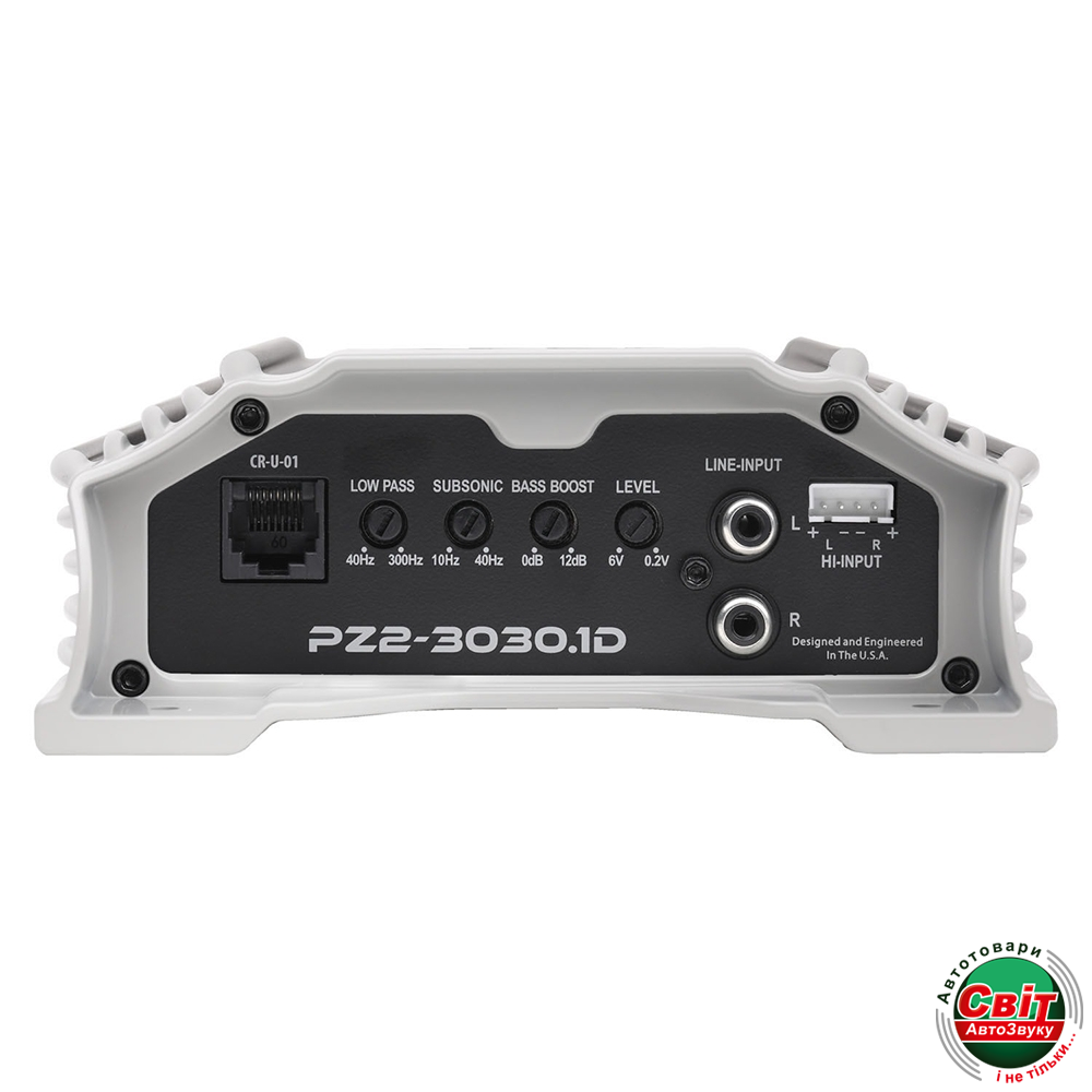 Підсилювач Crunch PZ2-3030.1DОдноканальний підсилювач від бренду Crunch моделі PZ2-3030.1D, що належить класу D, необхідний для поліпшення якості звуку штатної або застарілої акустичної системи транспортного засобу. Пристрій гарантує не тільки високу потужність, а й якість звуку та гучність. Має досить компактні габарити 432х178х83 мм, тому з'являється можливість розмістити пристрій у бажаному місці автомобіля. Система охолодження, що являє собою радіатор, виконує функцію відведення надлишків теплоти, через що пристрій має захист від перегріву. Під час вибору пристрою необхідно знати, що якість акустичної системи автомобіля залежить від відповідності опору підсилювача. Номінальна потужність цього пристрою за 1 Ом становить 3000 Вт на канал, за 2 Ом - 1500 Вт, за 4 Ом - 750 Вт.