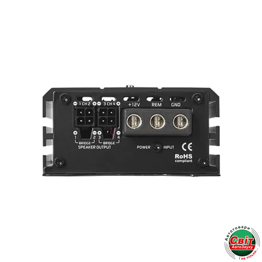 - Потужність RMS 4 Ом (14.4 В): 4×70 Вт