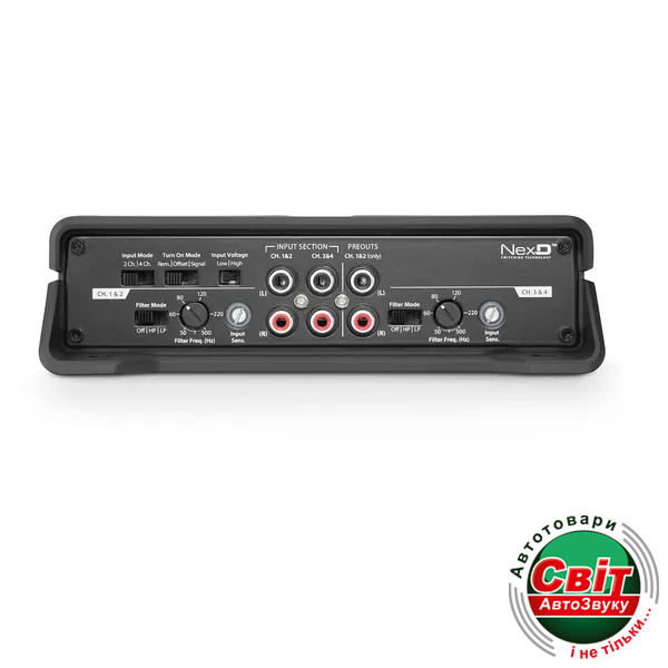 - Потужність RMS 2 Ом (14.4 В): 4 х 100 Вт