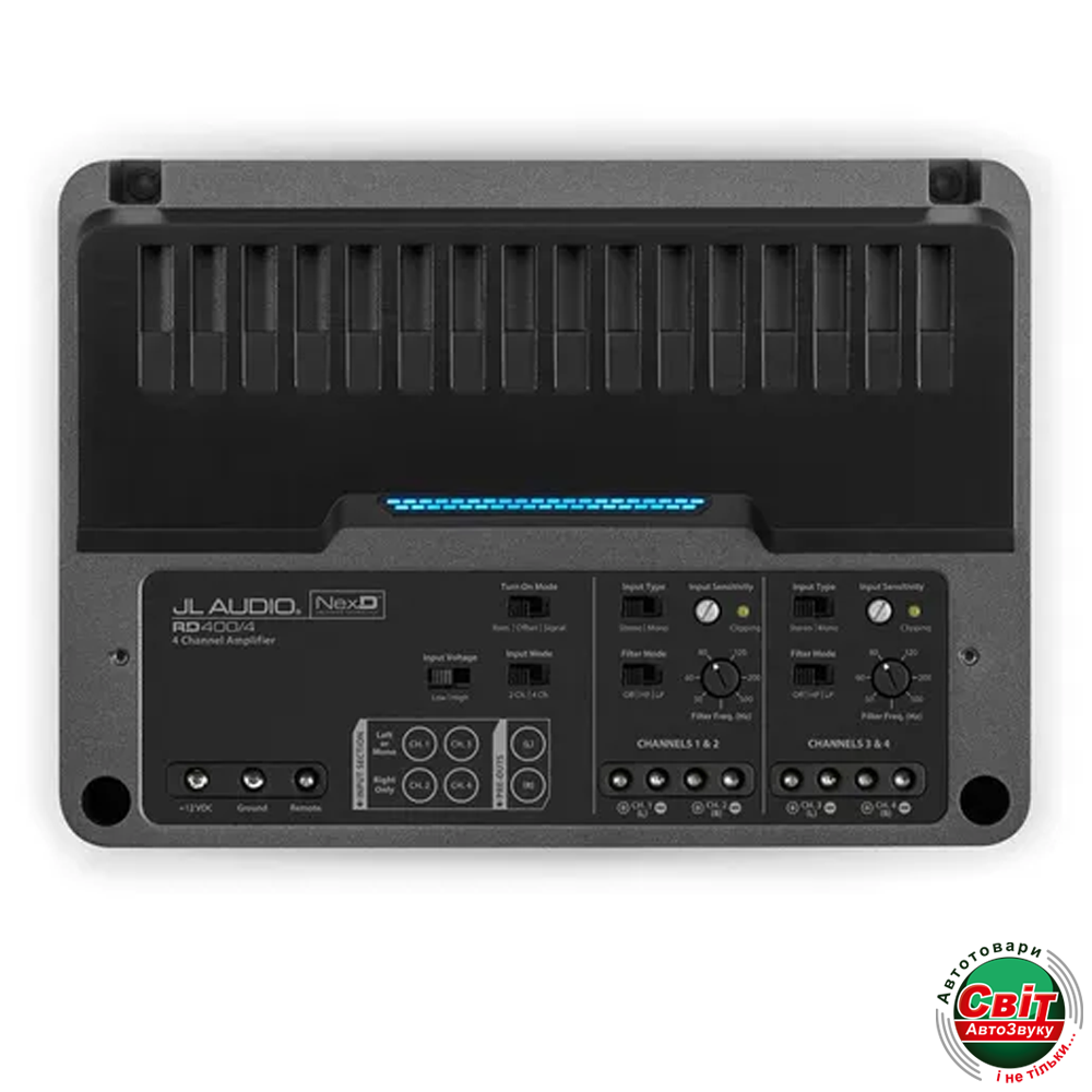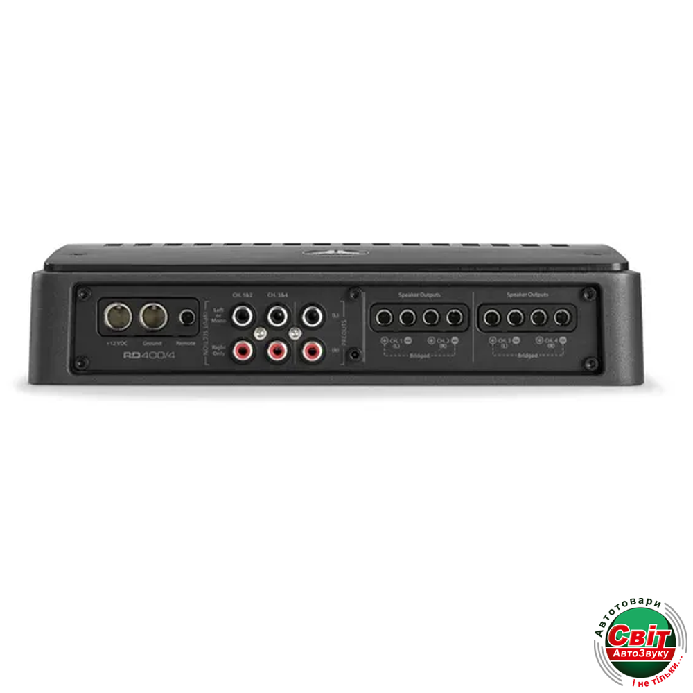 RD400/4 відтворює вашу музику з істинною точністю та вражаючим впливом, не напружуючи електричну систему вашого автомобіля завдяки фірмовій технології підсилювача NexD™ від JL Audio. "Диференціально-збалансовані" входи захищають вхідні сигнали від зовнішнього шуму і дозволяють підключати цей підсилювач практично до будь-якого радіо. Входи рівня динаміка мають два режими автоматичного включення, тому ви можете легко включити цей підсилювач у заводську систему - для цього налаштування не потрібні з'єднання RCA або провід дистанційного ввімкнення.
