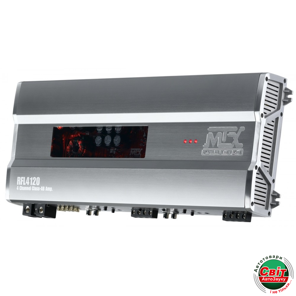 Підсилювач MTX RFL4120Чотирьохканальний підсилювач MTX RFL4120 (4x120 Вт RMS) - зразок якості звуку. Він знаходиться на передньому краї технологій та продуктивності. Це стандарт підсилювачів марки за якістю звуку. Вся його конструкція та використовувані компоненти випромінюють якість звуку. У силових каскадах використовуються транзистори марки Sanken. Це Hi-Fi транзистори. Ми приділяємо неймовірну увагу їхньому вирівнюванню, щоб звести спотворення до мінімуму. Гнучкість та гнучкість його фільтра дозволяють фільтрувати всі параметри (передні, задні, сабвуфер, низькі, середні або високі частоти, все можливо).