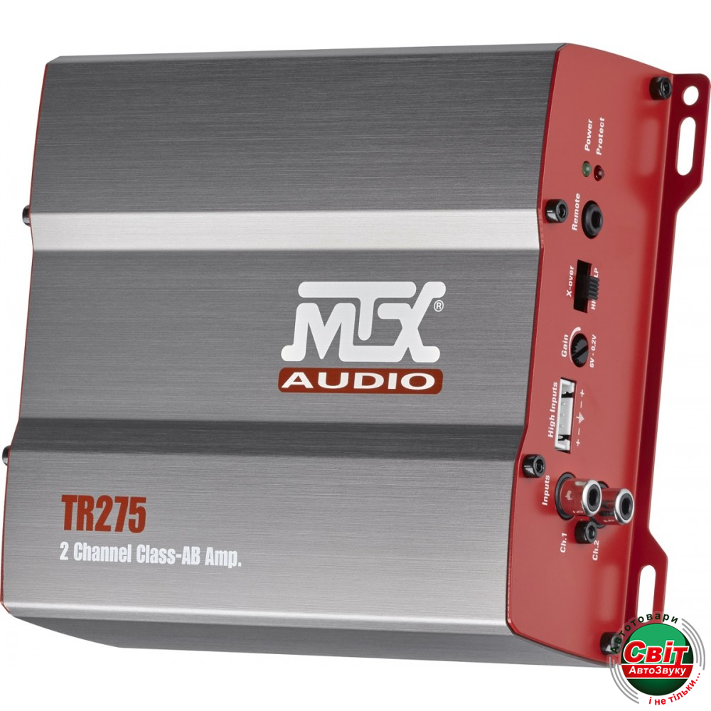 Підсилювач MTX TR275Двухканальний підсилювач MTX TR275 потужний та універсальний. Він може живити 2 гучномовці (2 Ом ~ 8 Ом) великого діаметра у передній, задній дверях або на деці. Він сяє легендарною динамікою та винятковою музичністю. Він не має нічого спільного з мікроскопічними підсилювачами без імпульсного живлення, якими комплектуються автомагнітоли... У мостовому режимі (Bridge) він здатний живити сабвуфер або 4-омний сабвуфер. Його активний змінний фільтр дозволяє йому бути надзвичайно точним: фільтр високих частот 12 дБ/окт або регульований фільтр нижніх частот від 50 до 120 Гц. Якщо ви не знаєте, з чого розпочати налаштування активного фільтра, потенціометр оснащений положенням "клацання" 80 Гц. Ви не можете помилятися. Щоб уникнути проблем із перешкодами, ми оснастили TR275 симетричними входами. Вони ідеально ізолюють звукову землю підсилювача, щоб вона не поєднувалася з шумною землею джерела живлення. Це потужна техніка, яка зазвичай використовується в підсилювачах.ня високого класу.