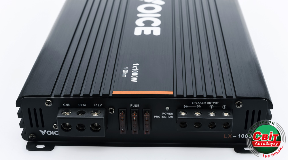 Підсилювач Voice LX-1000Одноканальні автомобільні підсилювачі VOICE серії LX - це відмінний вибір для тих, хто прагне отримати максимально насичене та збалансоване відтворення низьких частот у своїй автомобільній аудіосистемі. Підсилювач належить до класу D, що означає високу ефективність та низький рівень тепловиділення.