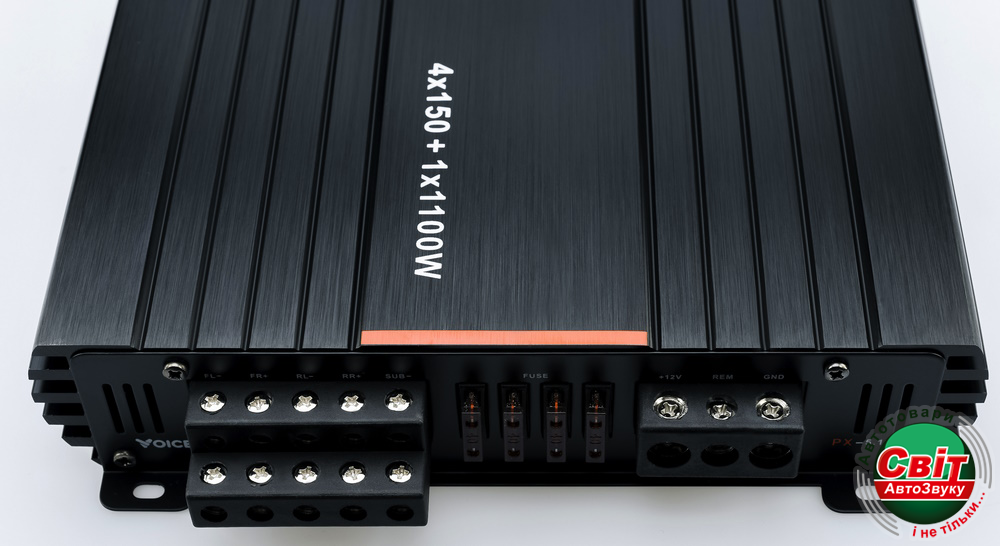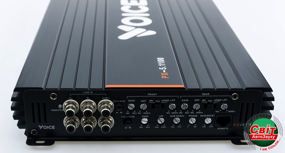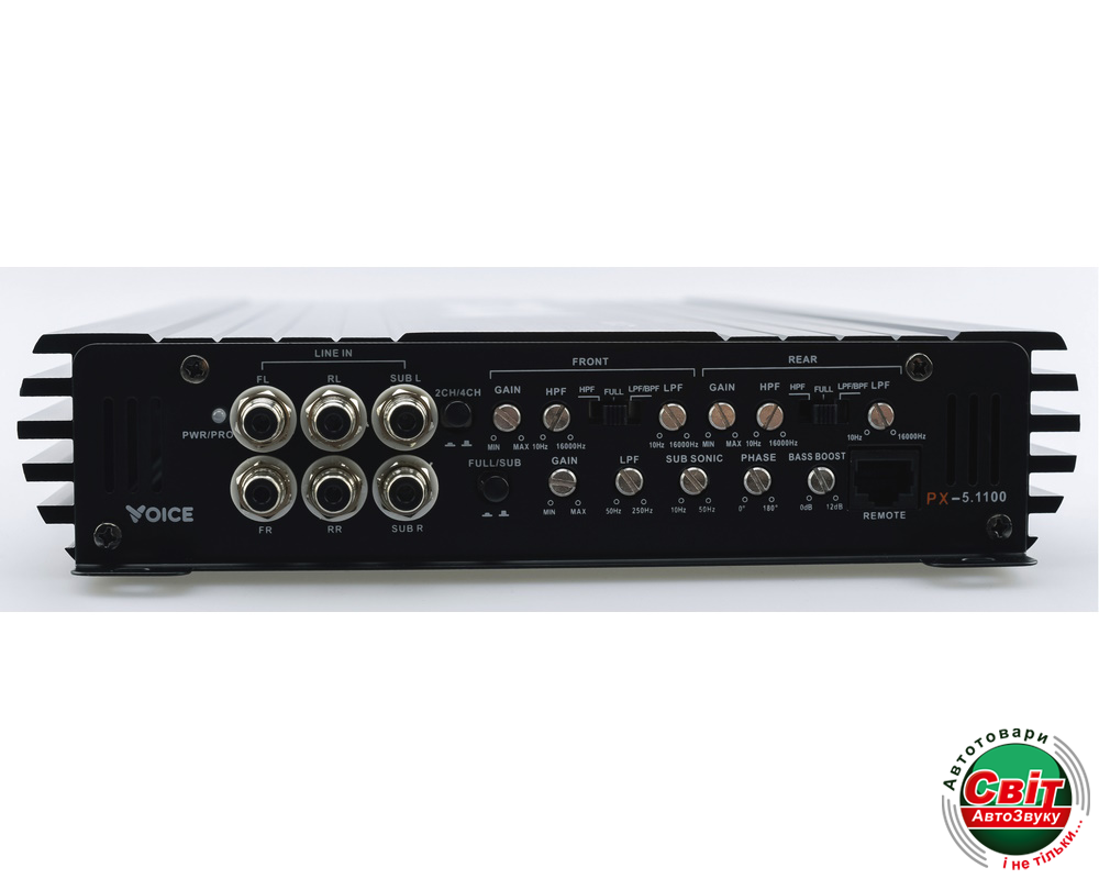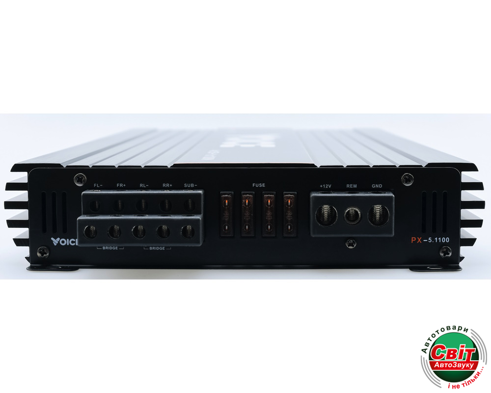 Підсилювач Voice PX-5.1100Якщо вам потрібен підсилювач, який подає високу потужність на сабвуфер та динаміки, PX-5.1100 – ідеальне рішення. Ви отримуєте кришталево чистий звук для акустичних каналів та вибуховий бас для сабвуфера, все з одного пристрою.