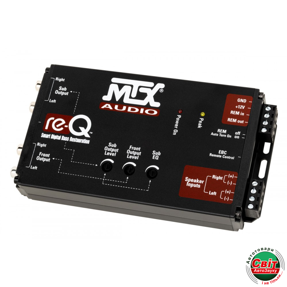 Перетворювач аудіосигналу MTX re-QRe-Q – це найбільш якісний та повний інструмент для модернізації вашого штатного головного пристрою до чудової якості звуку після виходу на ринок. Нічого не втрачено: два стереовиходи 10V RCA, пульт дистанційного керування EBC, автоматичний пульт дистанційного керування та re-Q, який відновлює баси, віддалені виробником автомобіля. І, звичайно, якість звуку залишалася нашою головною турботою під час розробки.