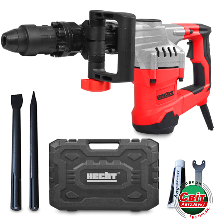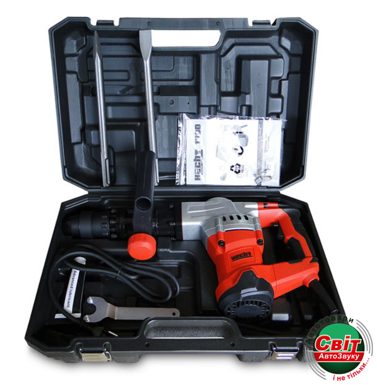 - Комплект постачання: В комплект входять загострене долото, плоске долото, мастило, сервісний ключ, дві вугільні щітки та транспортний кейс, що забезпечує готовність до роботи зразу після придбання.